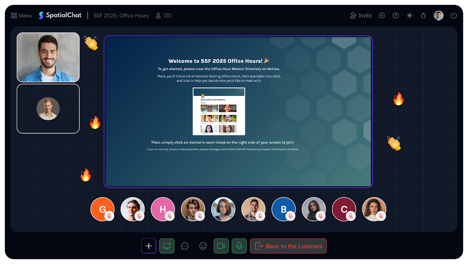 SSF turned to SpatialChat to host its Office Hours, a core part of the fellowship where students connect with mentors in smaller groups or one-on-one.