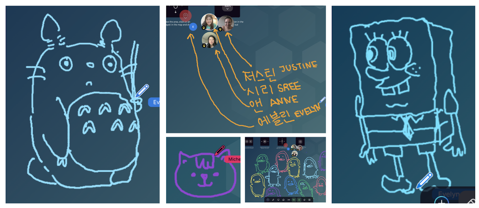 SpatialChat’s hands-on features also stood out. The drawing tool quickly became a favorite among fellows, some of whom used it to showcase their creativity during the summer’s sessions. These moments brought energy and personality to the experience, making it feel less like a standard video call and more like an immersive environment.